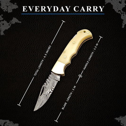 Bone Handle Folding Knife With Turquoise Resin Accent