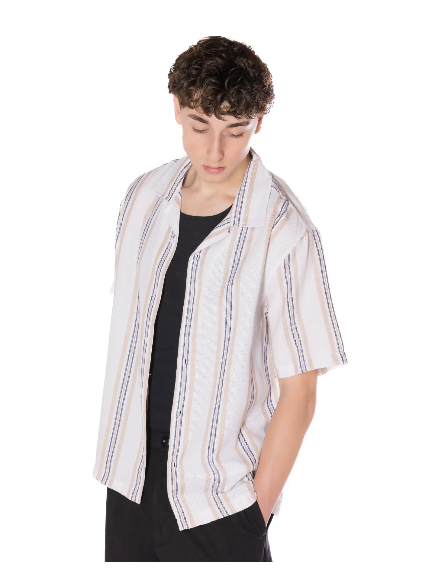 Textured Striped Camp Shirt